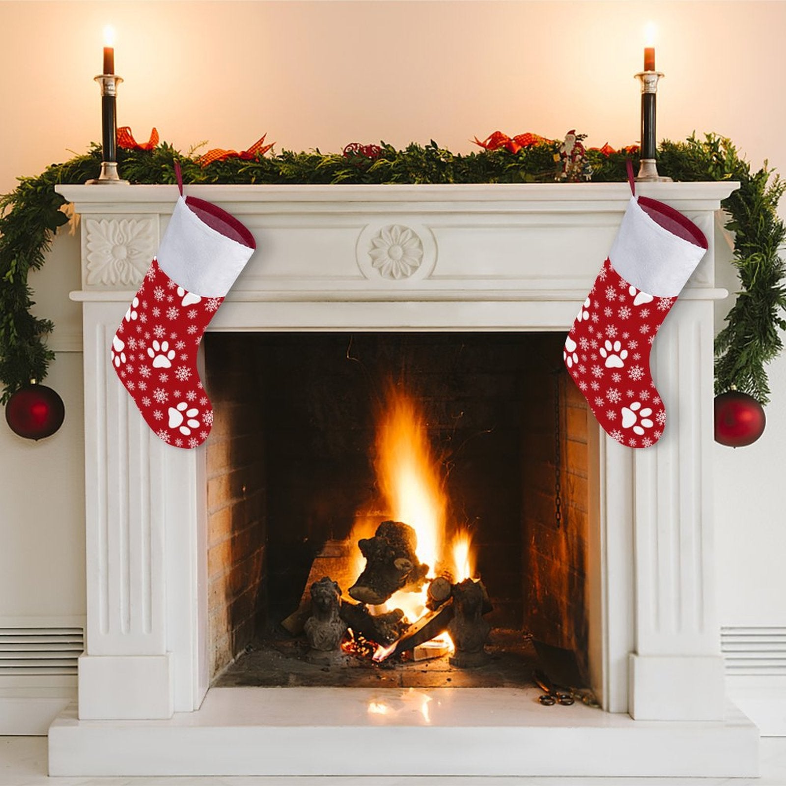 Todo en esta bota evoca la calidez y la nostalgia de la Navidad. La tela, una mezcla premium de poliéster y spandex, tiene el peso y la caída perfectos. El puño de felpa blanca es tan suave como los primeros copos de nieve. Es la bota que Santa esperaría encontrar, un ancla visual que hace que cualquier chimenea o pared se sienta instantáneamente como un hogar en Navidad.