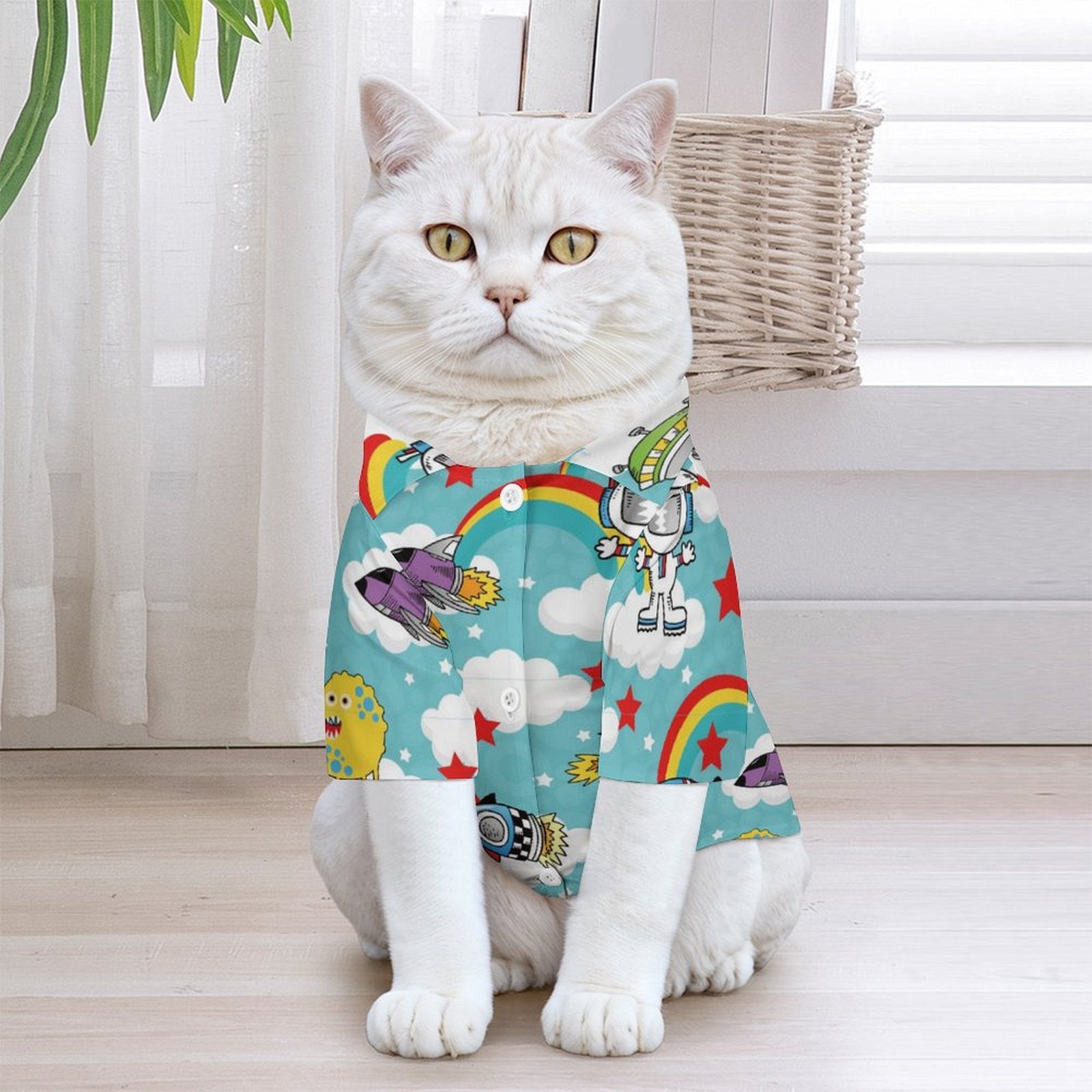 Olvida las prendas pesadas o restrictivas. Hemos creado la pieza definitiva para el "anfitrión" de cuatro patas: una camisa que grita "verano", "fiesta" y "buenos tiempos".