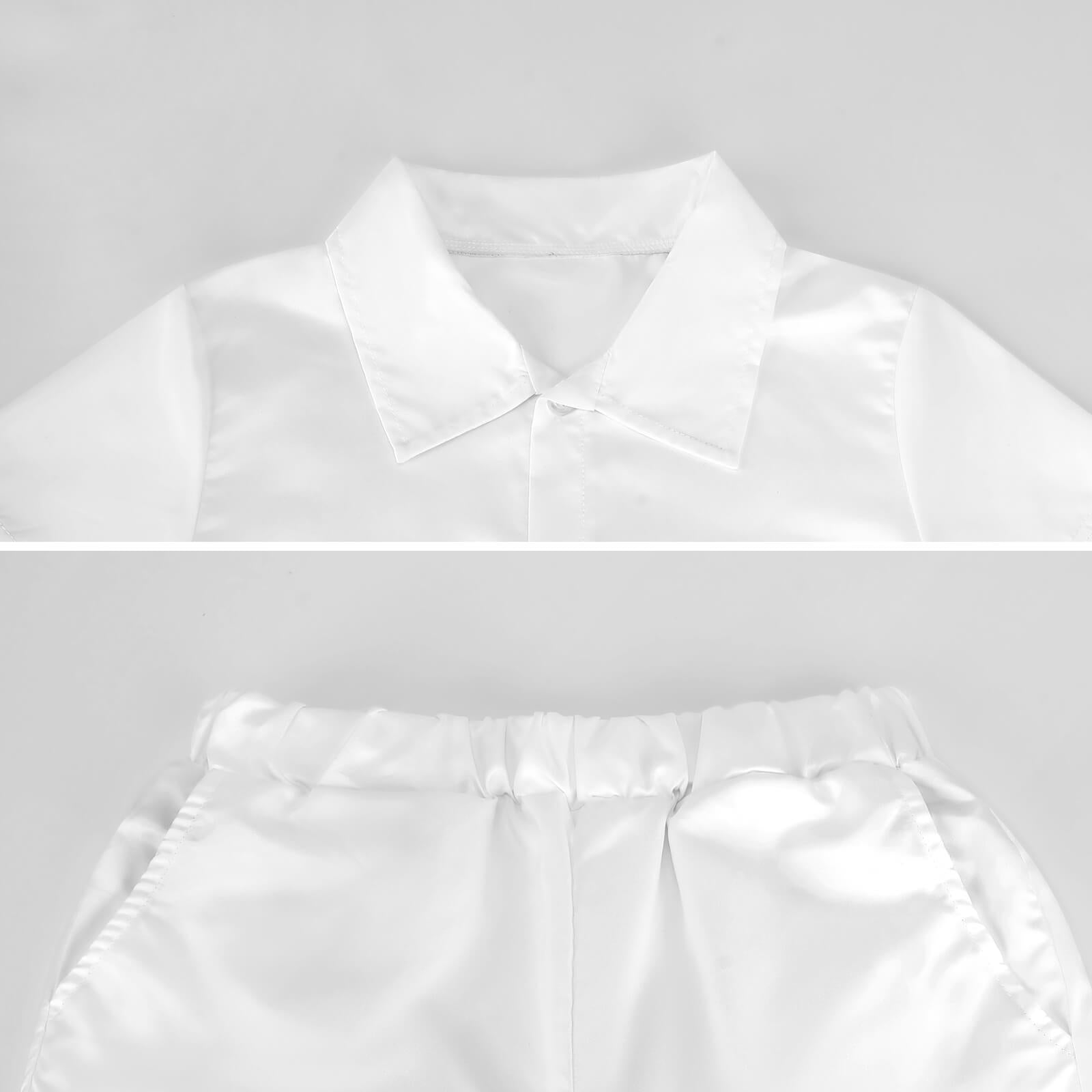 La camisa con botones es fácil de poner y quitar, mientras que los shorts a juego con cintura elástica ofrecen una libertad total para correr, saltar y explorar. ¡Un look cool y funcional para los reyes del verano!