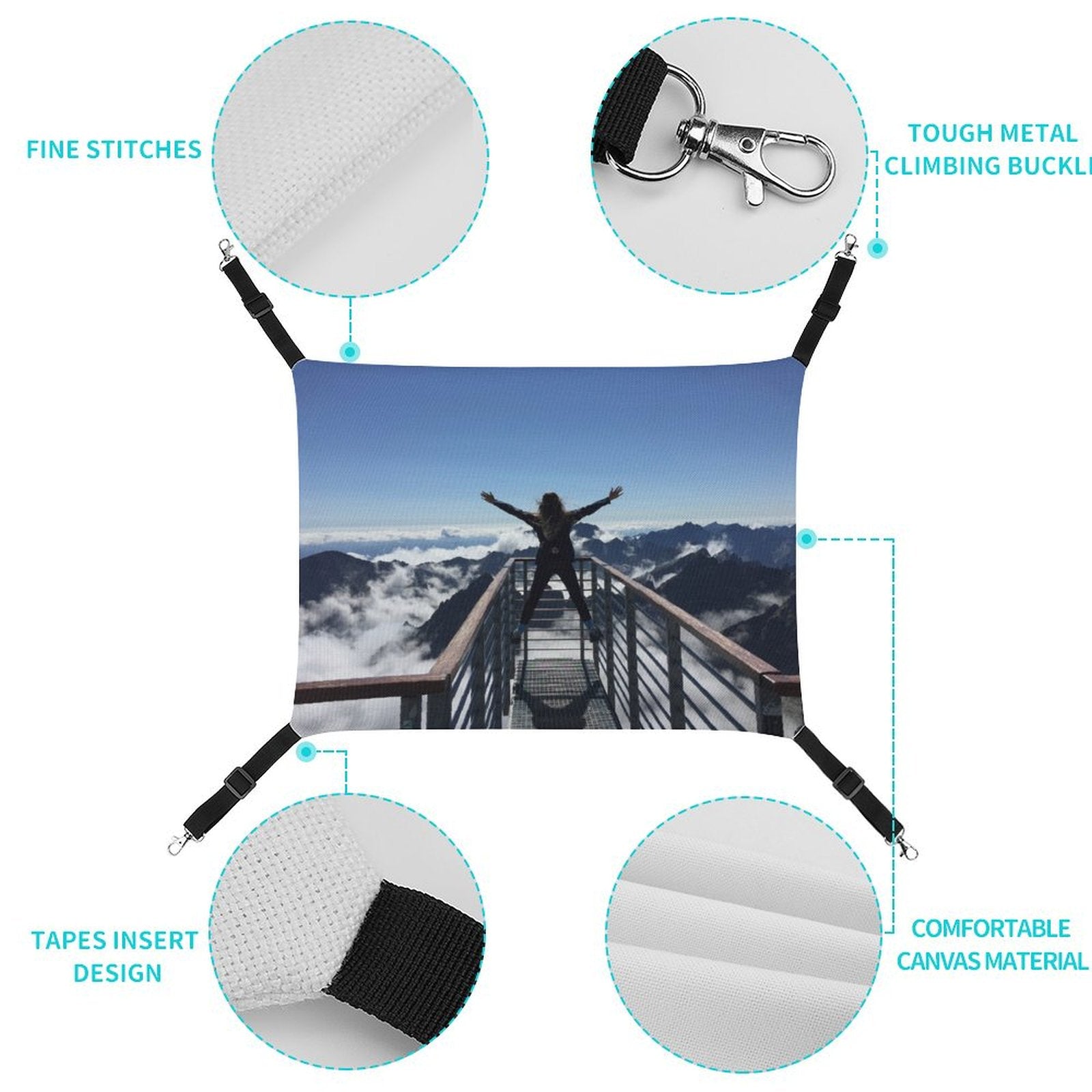 Sabemos que el espacio es valioso. Por eso, hemos diseñado esta hamaca para ser la solución más eficiente que existe. Se cuelga fácilmente en segundos en casi cualquier lugar gracias a sus ganchos metálicos y correas ajustables. Instálala debajo de una silla para crear un escondite secreto, o en las esquinas de una jaula o transportadora para transformar un espacio funcional en un hogar de lujo durante viajes o estancias en la veterinaria.