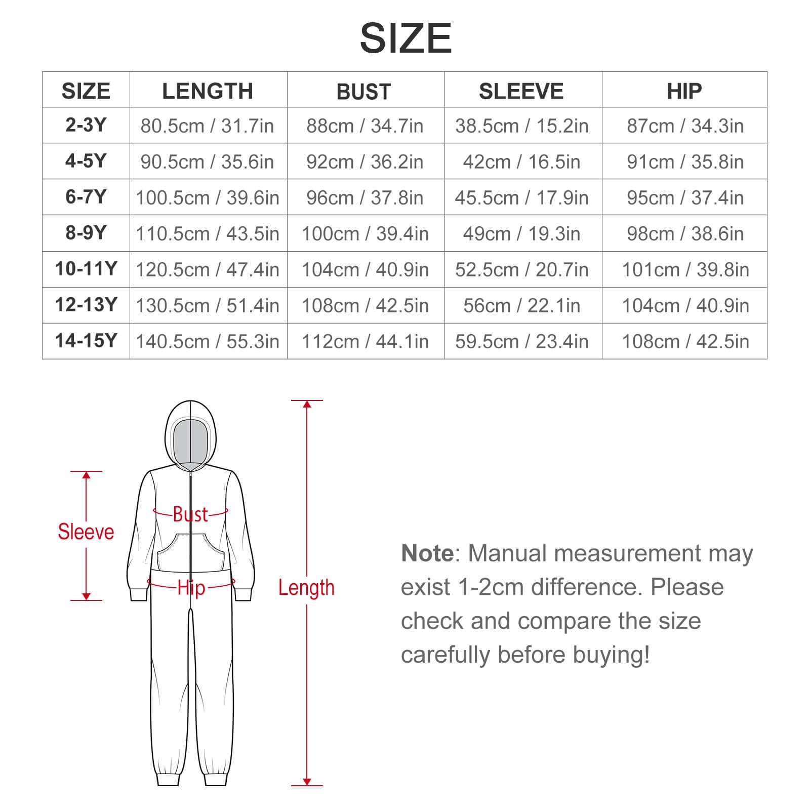 12-13Y | 130.5 / 51.4 | 108 / 42.5 | 56 / 22.1 | 104 / 40.9 |