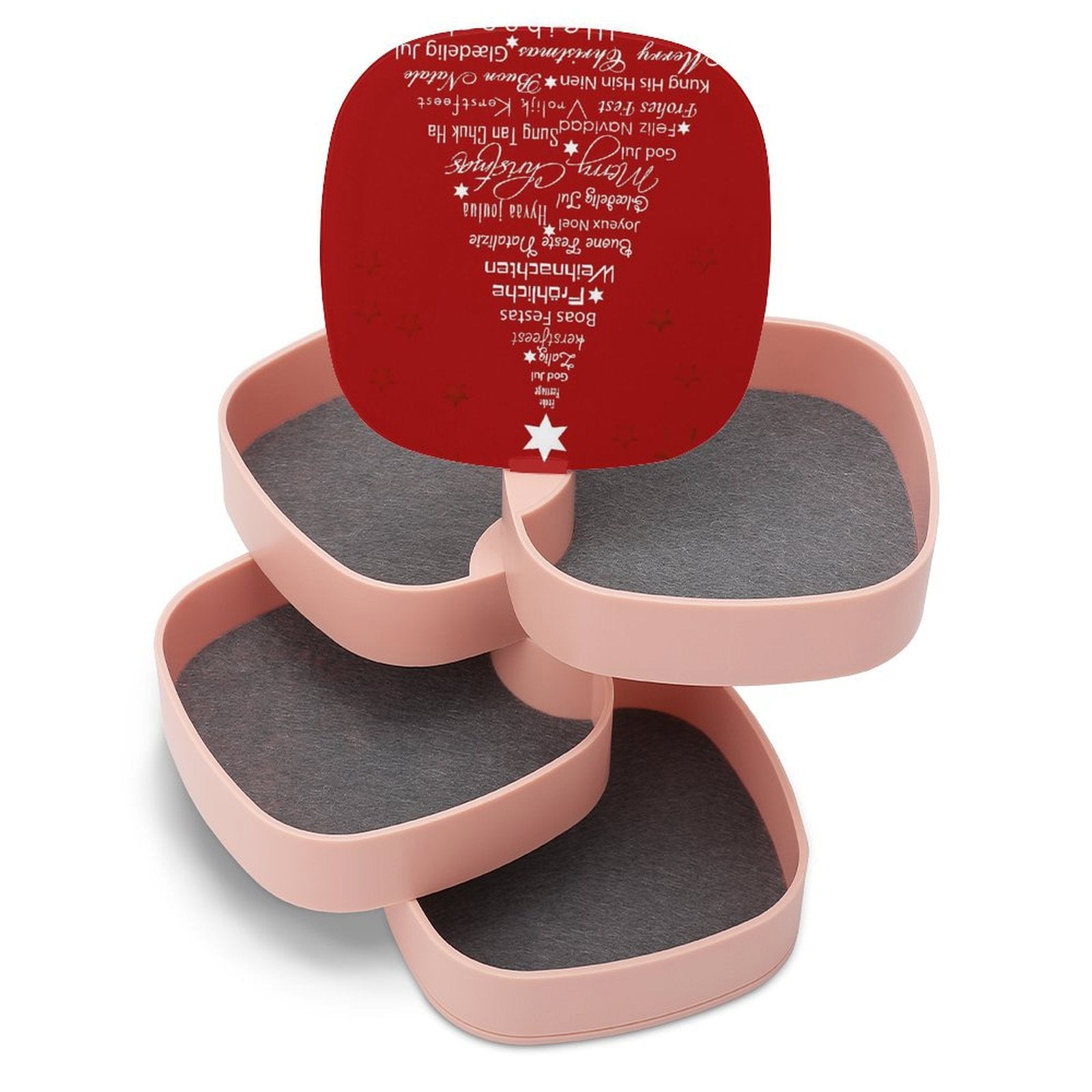 Te presentamos la revolución para tu tocador: el organizador de joyas giratorio de 4 niveles. Esto no es una caja. Es una escultura funcional. Una torre compacta y elegante que, con un suave giro, despliega tus tesoros en un ballet de organización perfecta. Cada nivel se abre para revelar su contenido, permitiéndote ver y acceder a cada anillo, arete o pulsera al instante. Y cuando terminas, se cierra en un cilindro minimalista que protege tus joyas del polvo y mantiene tu espacio visualmente limpio y sereno.