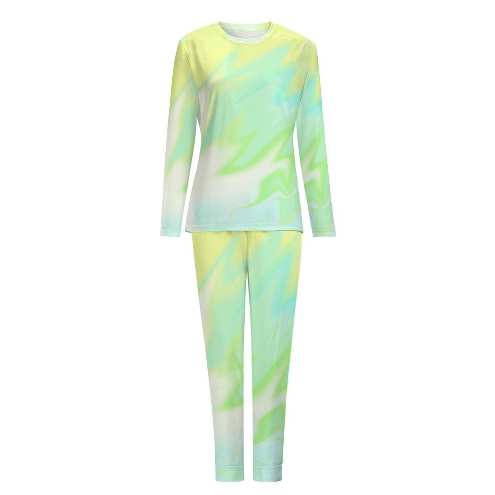 Imagina una pijama que se siente como una segunda piel. Un conjunto diseñado no solo para dormir, sino para vivir tus momentos de calma con una suavidad y libertad incomparables. Te presentamos nuestro conjunto de dos piezas, confeccionado con una mezcla premium de 95% poliéster y 5% spandex. Es más que ropa de descanso; es un lienzo en blanco para tus emociones, un santuario de confort que se mueve contigo y lleva tu sello personal.