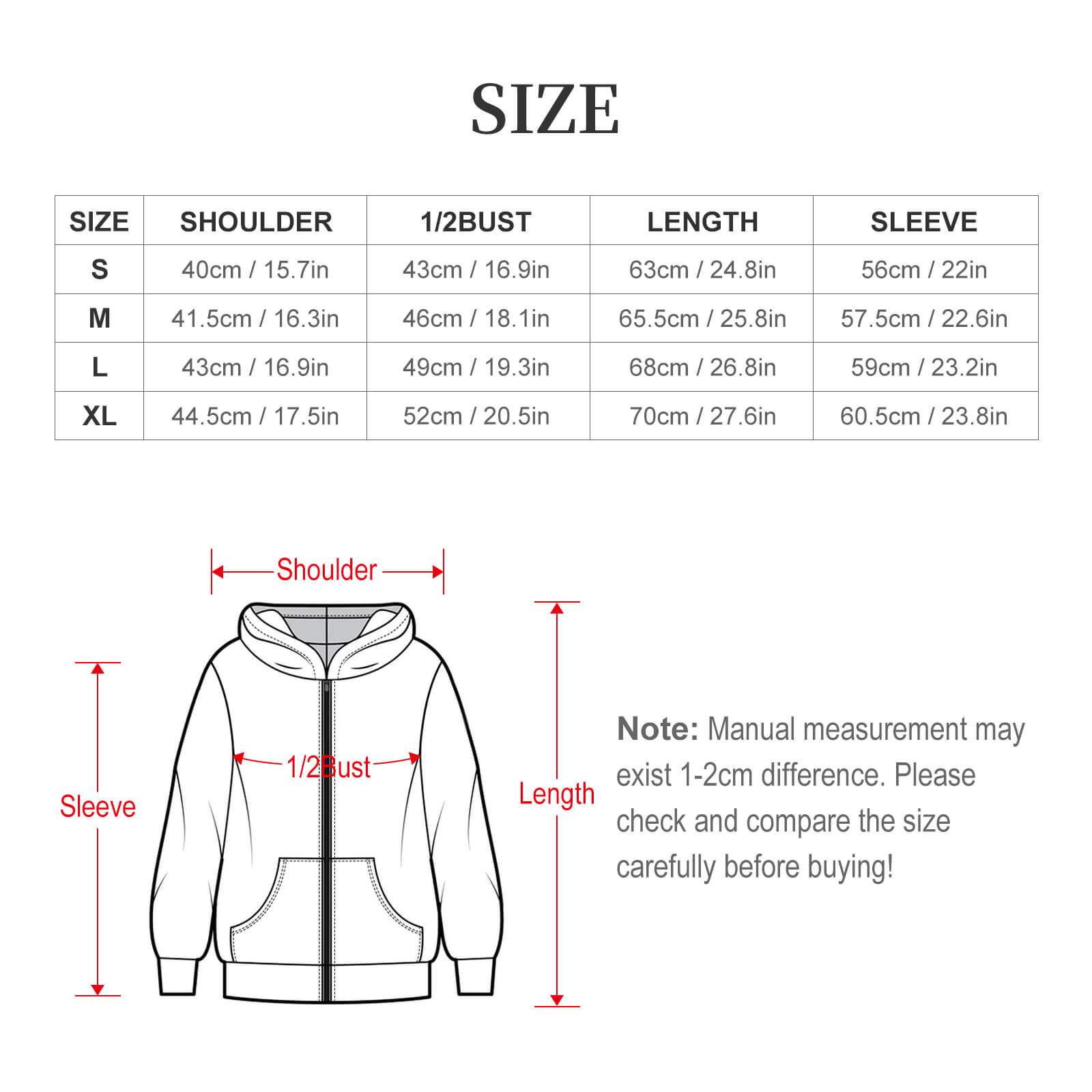 Para asegurar que tu sudadera te quede como hecha a la medida, por favor consulta la siguiente tabla. Te recomendamos medir una prenda que ya tengas y te guste cómo te queda, y comparar esas medidas con las nuestras.