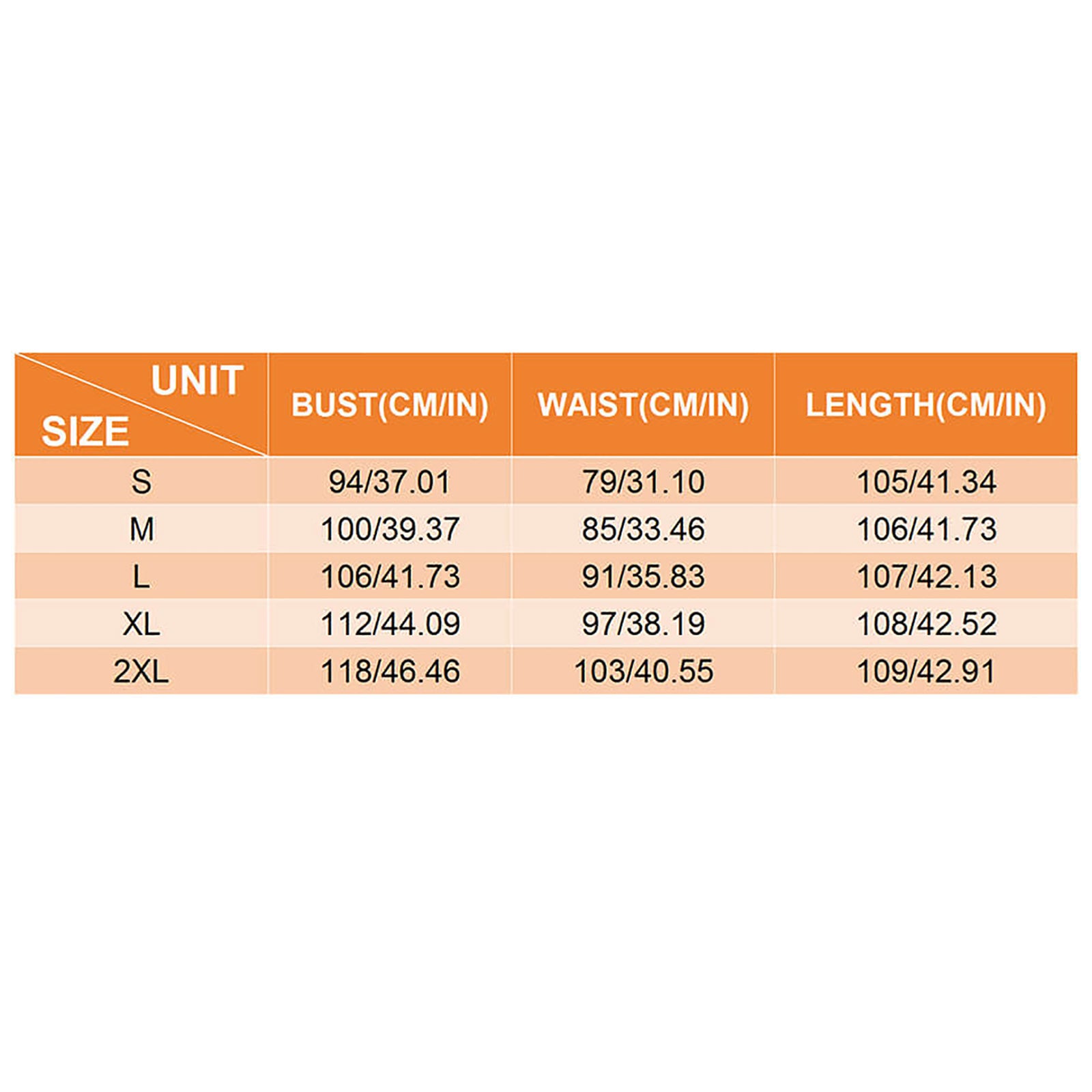 Talla | Pecho (cm/in) | Cintura (cm/in) | Largo (cm/in) |