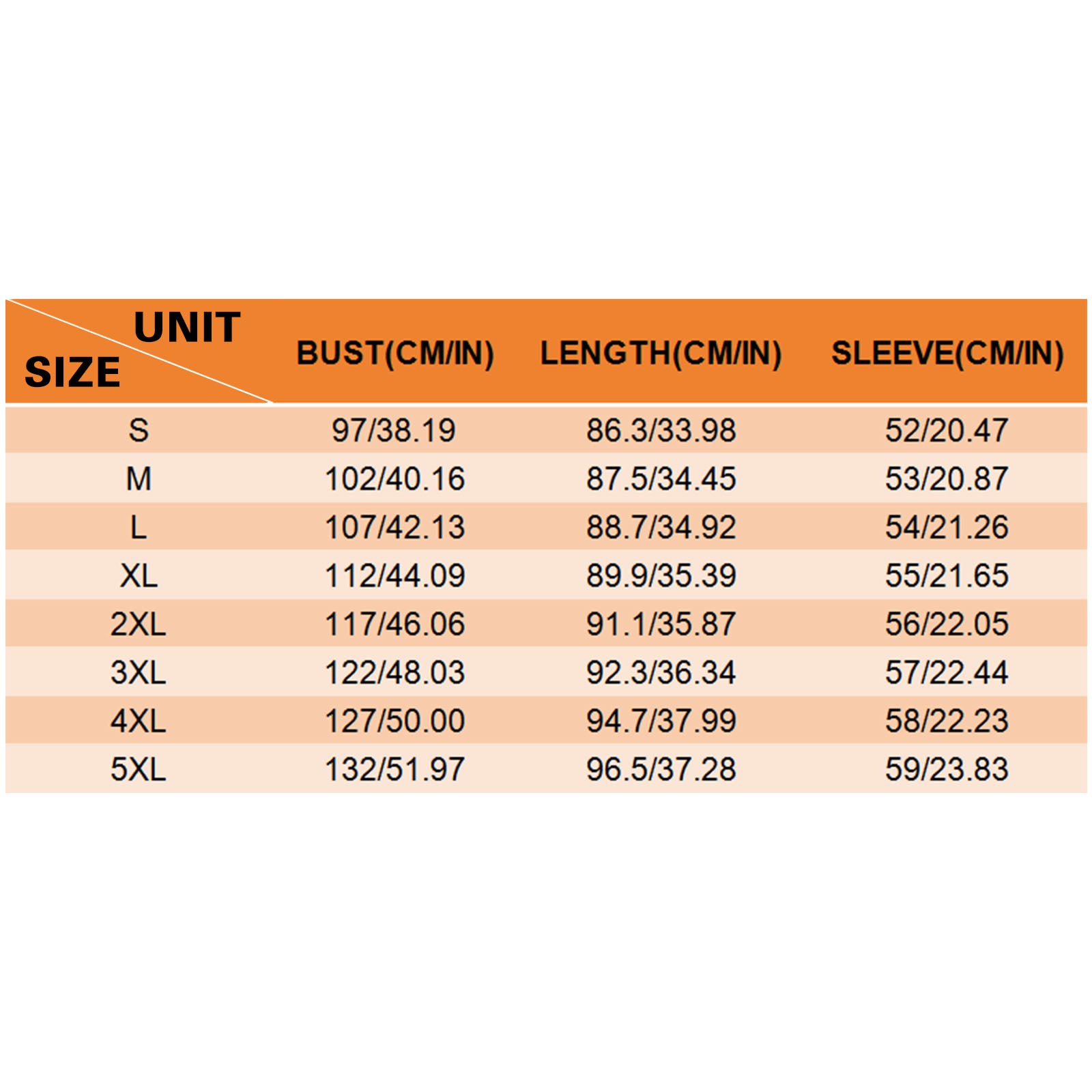 4XL | 127 | 96.5 | 58 |